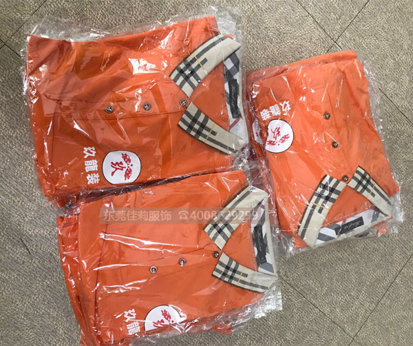 玖龍裝飾的吳總是通過老客戶介紹認(rèn)識的,因為是做裝飾行業(yè),所以對夏季工作服的要求,是吸汗透氣,而且形象亮眼,給人一種時尚低調(diào)有內(nèi)涵的感覺。吳總選中了一款橙色T恤衫,非常感謝吳總的理解,雖然延遲了交貨日期,但還是非常順利交貨了。
