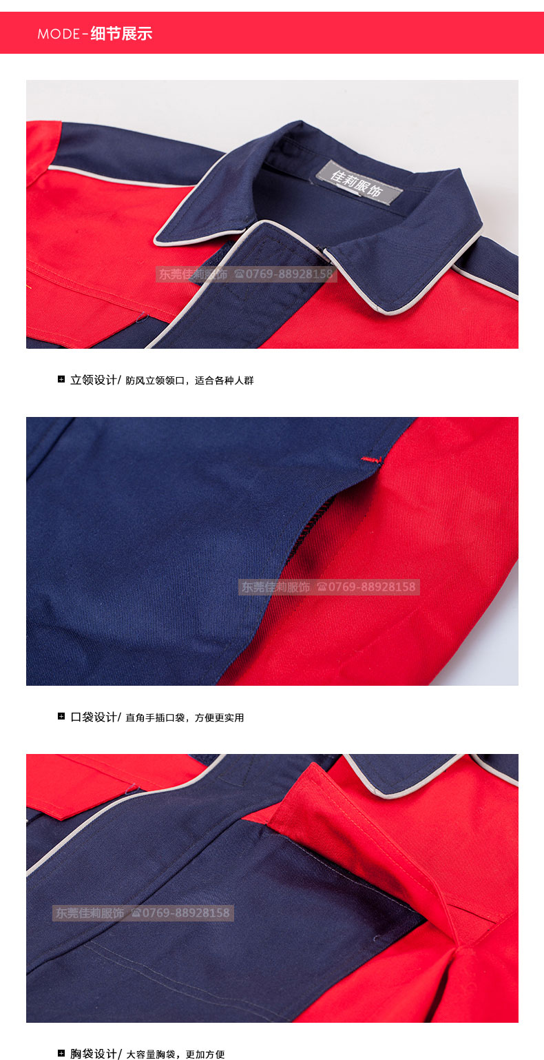 高品質全新形象,經(jīng)典設計,立體裁剪,時尚翻領,質感有型。走線細致,優(yōu)質暗扣,實用性強。胸前口袋撞色拼接,雙明線縫制既時尚又耐用,即使在下班之余也可以穿。
